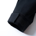 - 落肩、寬大袖籠與袖肘打褶設計,提供舒適的層次穿搭空間